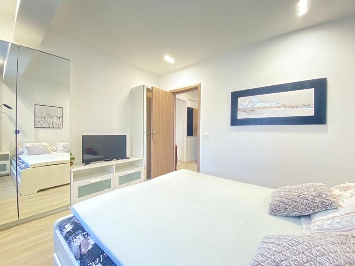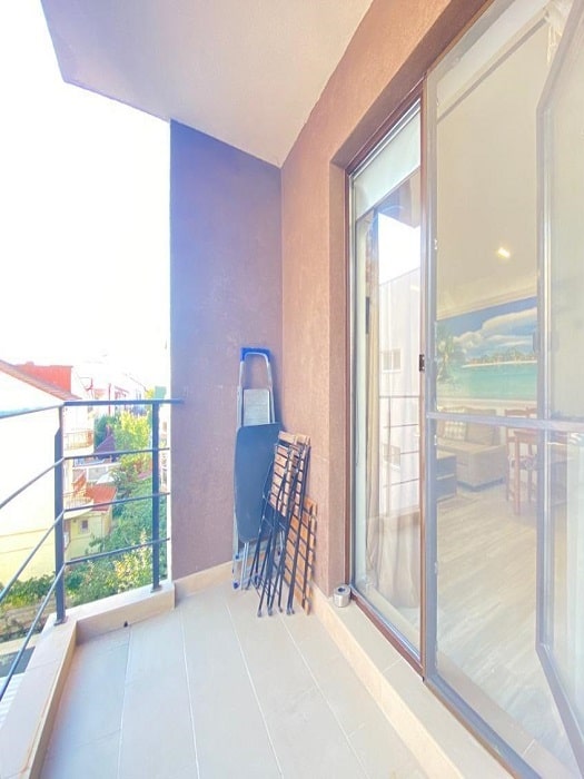 Apartamentul este complet nou și este compus dintr-un dormitor și o cameră de zi spațioasă cu bucătărie, toate integrate într-un open space modern. Un balcon generos vă așteaptă să vă bucurați de o cafea și de briza proaspătă a mării.