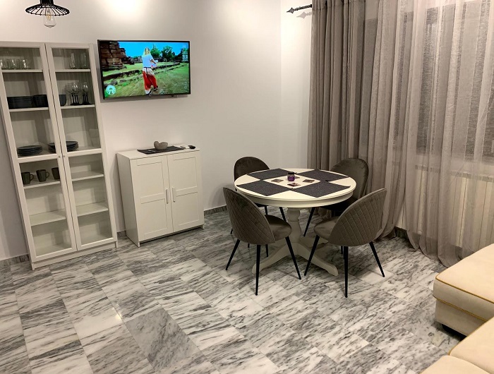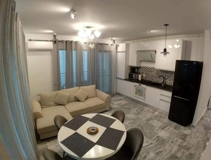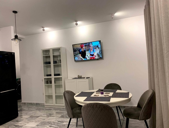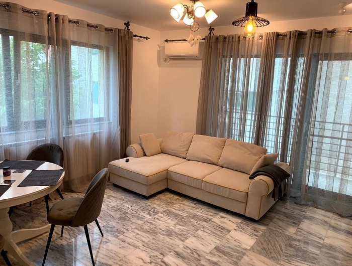 Apartamentul este compus din două camere: un living spațios open-space cu bucătăria și un dormitor. Livingul este echipat cu colțar extensibil, Smart TV și dispune de un balcon generos.